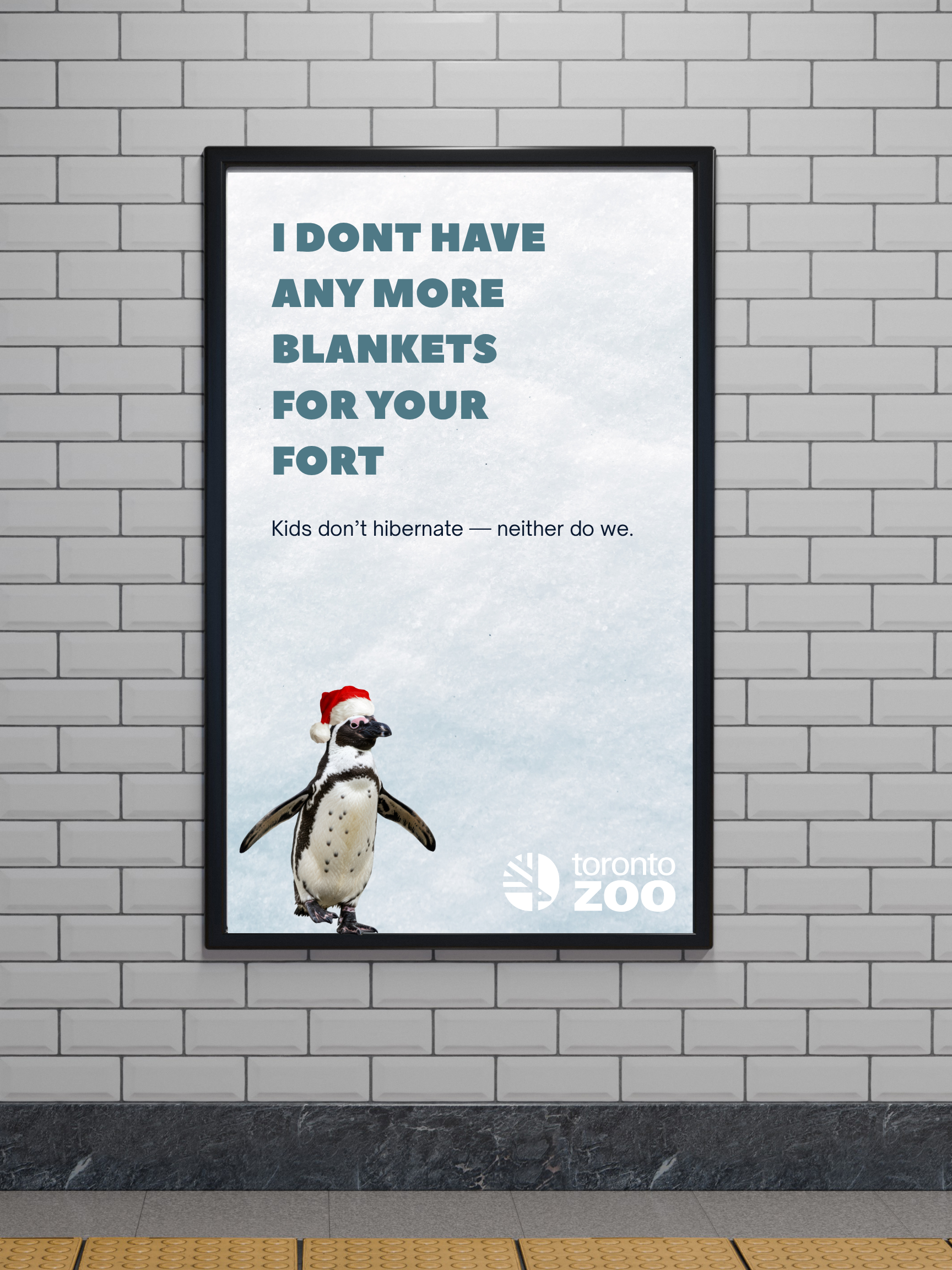 I created a three-part out-of-home ad series, tailored to millennial parents with multiple kids. The ads have a humorous, real-life tone, and position the Toronto Zoo as the perfect escape from the stuffy indoors, reframing winter visits as a fun, needed alternative to repetitive indoor activities.